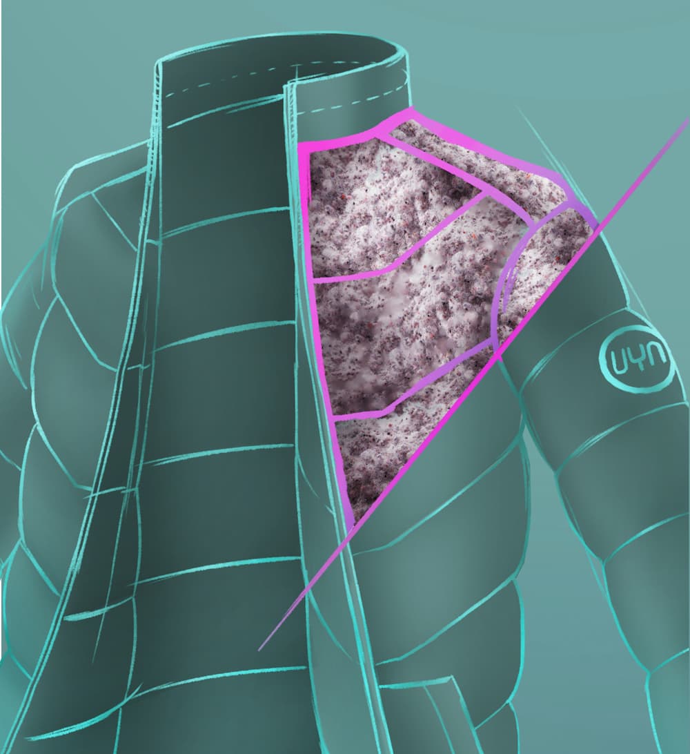 UYN’s technicians have created AIRNEST, an unique material perfect for the padding of the garments. Thanks to its micro-structure with air nests, obtained from the special intertwining of fibers, AIRNEST is able to trap more warm air than traditional synthetic padding and to create a layer with high thermal insulating power.